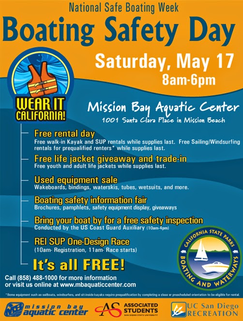 For more information on the Boating Safety Day event you can visit the Mission Bay Aquatic Center website at www.mbaquaticcenter.com/safe-boating-day. The Mission Bay Aquatic Center is located at 1001 Santa Clara Place in Mission Beach. The event hours are 8am-6pm.